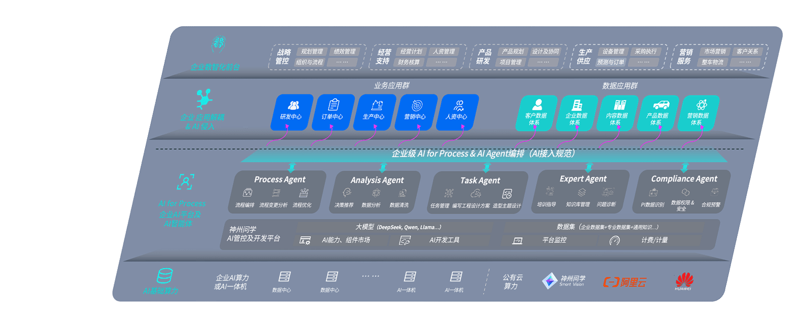 壹号娱乐问学智车解决方案是一套基于AI技术的汽车行业智能化系统,,,,覆盖从底层算力到顶层AI应用的全栈方案。。。。方案由算力层、、、、模型层和应用层组成:算力层,,,方案支持多种一体机配置,,,,具备云端灵活部署、、多云适配以及动态优化计算资源的能力;模型层,,,壹号娱乐问学平台版提供了企业级AI应用一站式构建与管理平台,,,支持基于后训练强化技术的汽车企业专属模型的训练、、、评测和运营;应用层,,壹号娱乐问学DeepSeek版提供包括超级员工、、、智能招采、、、智能营销、、、智能客服、、、AI for BI等一系列解决方案,,可助力汽车行业实现数字化转型,,,,让管理更智能、、响应更敏捷。。。。